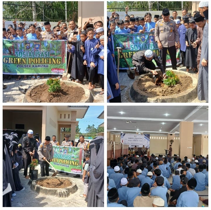Kampar, Eradigitalnews.com : Kapolsek Kampar AKP Asdisyah Mursyid, SH melaksanakan kegiatan Green Policing di Pondok Pesantren Almadania, Desa Koto Tibun, kegiatan ini yang berlangsung dari jam 09.00 sampai 10.30 wib pada hari Senin (3/11/2025).