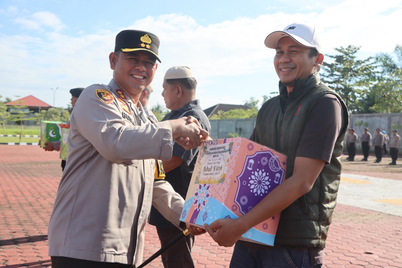 Setelah prosesi apel, penyerahan bingkisan Lebaran menjadi momen yang sangat dinantikan. Paket yang diberikan diharapkan dapat menambah kebahagiaan personel dalam menyambut Idul Fitri 1446 H. Penyerahan dilakukan secara simbolis kepada perwakilan penerima, yang kemudian disusul dengan amanat dari Kapolres Rokan Hulu.
