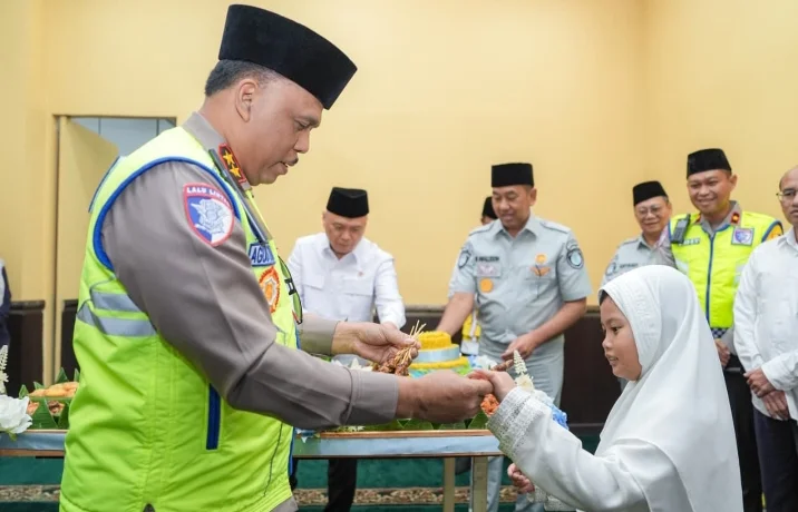 Acara doa bersama tersebut juga diwarnai dengan momen hangat pemotongan tumpeng oleh Menteri Perhubungan Dudy Purwagandhi. Tumpeng tersebut diberikan kepada anak-anak yatim binaan Korlantas Polri sebagai simbol rasa syukur dan harapan akan kelancaran tugas.