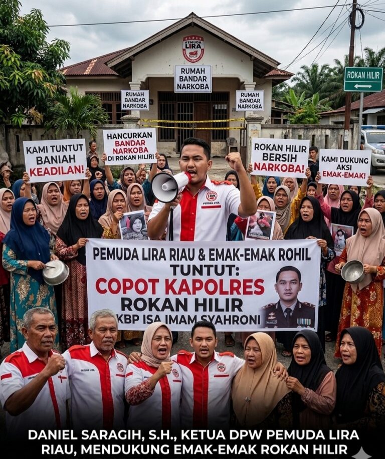 Dalam kunjung dua pekan ini kabupaten Rokan Hilir Digegerkan dengan dua kasus yang sama sehingga masyarakat melakukan aksi Demo didepan Rumah diduga menjadi Bandar Narkoba diwilayah Rokan Hilir, Riau, Dalam kondisi darurat ini Ketua Pemuda Lira Provinsi Riau, Daniel Saragi SH mengecam keras dalam peredaran narkoba diwilayah kabuputen rokan hilir, yang peredaran Narkoba tersebut merusak penerus generasi gemilang anak bangsa,