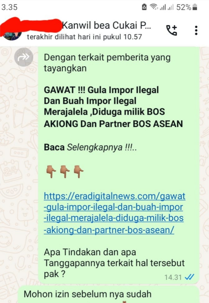 Hal ini pernah dipertanyakan pada hari Senin tgl 03 Maret 2025 lalu oleh awak Media ini melalu via WhatsApp Humas Kanwil DJBC Riau , Memilih bungkam saat dikomfirmasi awak media