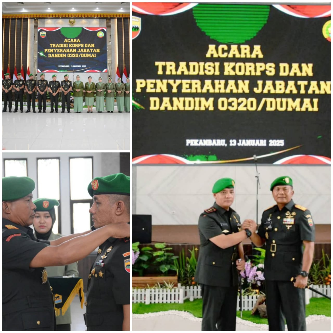 Pekanbaru, Eradigitalnews.com : Komandan Resor Militer (Danrem) 031/Wira Bima Brigjen TNI Sugiyono pimpin langsung Tradisi Korps Dan Penyerahan Jabatan Komandan Kodim (Dandim) 0320/Dumai kepada Letnan Kolonel Inf Ronal Marpaung, S.Sos. Acara berlangsung khidmat di Auditorium Kaharuddin Nasution,Jl. Mayor Ali Rasyid No. 01 Pekanbaru. (13.01.2025)