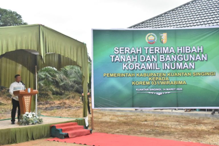 “Dalam kesempatan ini Kami Hibah kan tanah dan Bangunan Koramil Inuman kepada Bapak Danrem 031/Wira Bima. Kami berharap mudah-mudahan ini bisa bermanfaat dan bisa membantu pemerintah Kabupaten Kuansing untuk membantu kesulitan Rakyat, ” ujarnya.