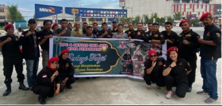 PEKANBARU , Eradigitalnews.com : Ketua DPC GRIB JAYA Kota Pekanbaru Melky S Sinaga, Sekretaris Rusman Juffri Janward, Bendahara Ronal MP, Komandan SATGAS Indra Lubis, dan Srikandi GRIB bersama para pengurus melaksanakan kegiatan pembagian takjil di seputaran Kesekretariatan DPC GRIB JAYA Kota Pekanbaru Jalan Soekarno Hatta,Komplek Taman Malibu blok C 12, Senin (10/3/2025) pukul 17.00 WIB.