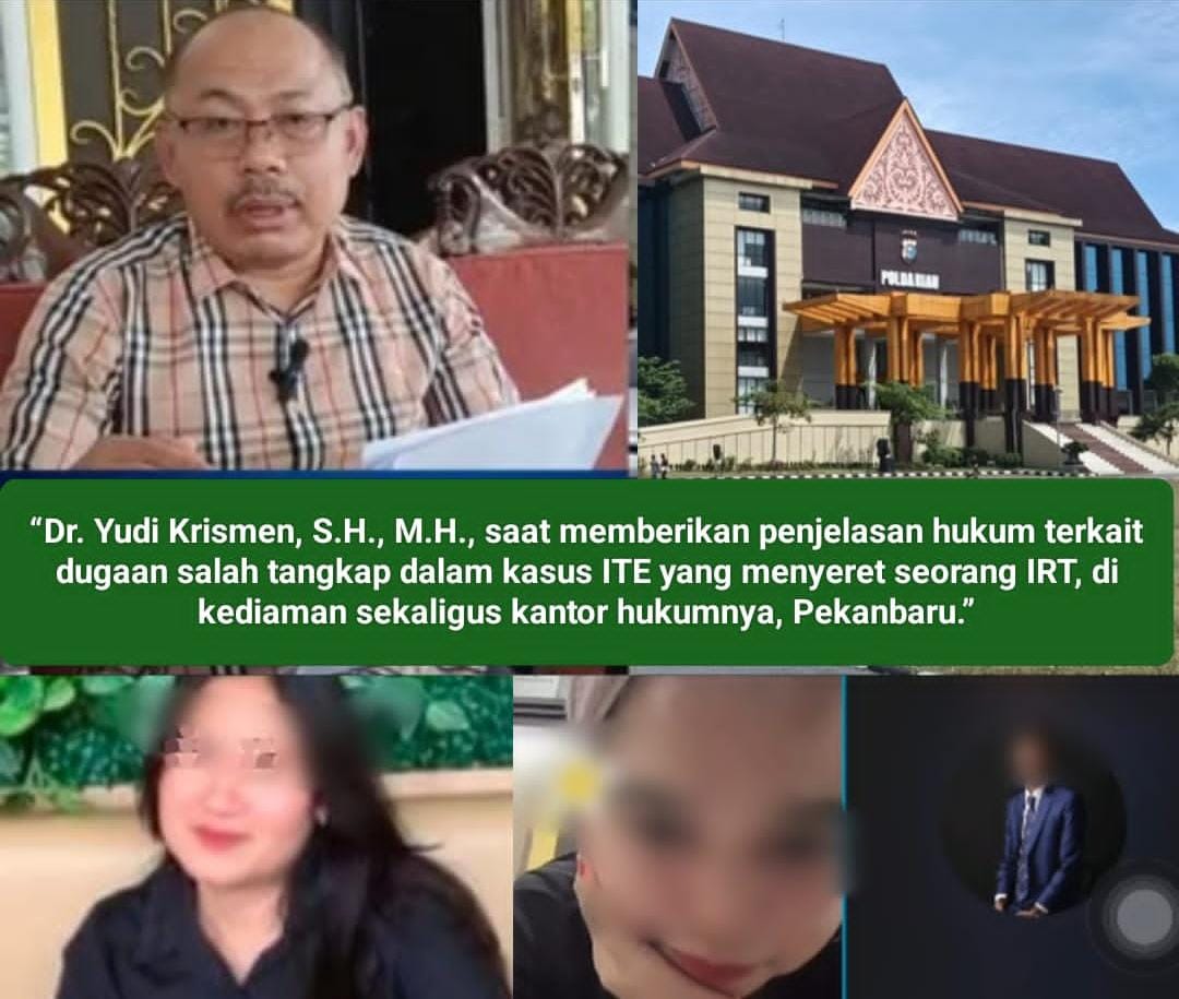 Pekanbaru, Eradigitalnews.com : Penanganan perkara dugaan pelanggaran ITE yang menjerat seorang ibu rumah tangga, M, kini memasuki titik paling krusial. Setelah rekaman, dokumen internal, dan rangkaian pemeriksaan memperlihatkan kejanggalan demi kejanggalan, kini analisis akademis–yuridis dari Dr. Yudi Krismen, S.H., M.H., memperlihatkan secara terang struktur kekeliruan penyidikan yang dilakukan di lingkungan Ditreskrimsus Polda Riau. Kombinasi temuan lapangan dan analisis itu memperkuat dugaan bahwa M adalah korban salah tangkap, salah prosedur, dan salah penerapan hukum.