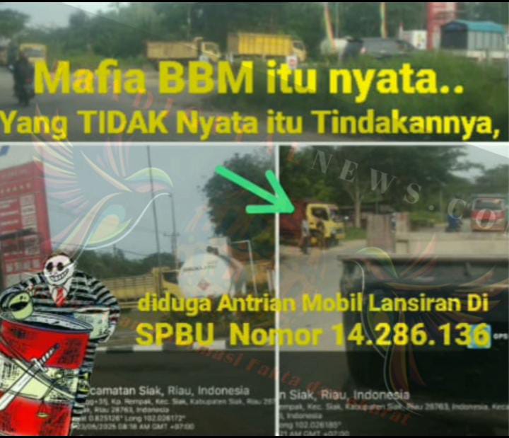 Semoga APH Setempat Polsek Siak Dan Polres Siak dan Polda Riau dapat membuka mata dan dapat menindaklanjuti aktifitas aktivitas SPBU nakal yang melayani lansiran kepada para Mafia Penimbun BBM Subsidi Jenis Solar maupun Pertalite.Agar masyarakat biasa dapat merasakan dan lebih di perhatikan dalam pelayanan pembelian BBM subsidi,bukan hanya untuk kepentingan mereka pribadi yang memperkaya kan diri.