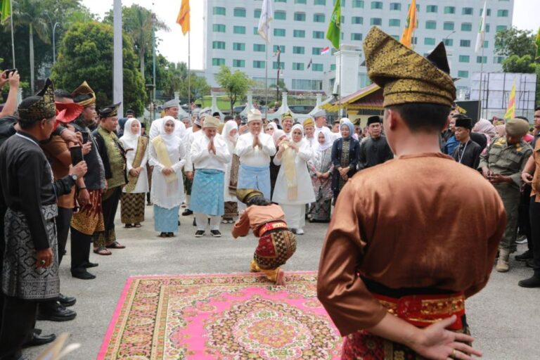 Para pemimpin ini disambut dengan gemuruh suara kompang dan sorak-sorai warga. Prosesi penyambutan tersebut diadakan di Gedung Lembaga Adat Melayu Riau, Jalan Diponegoro, Kota Pekanbaru, Sabtu (01/03/2025).