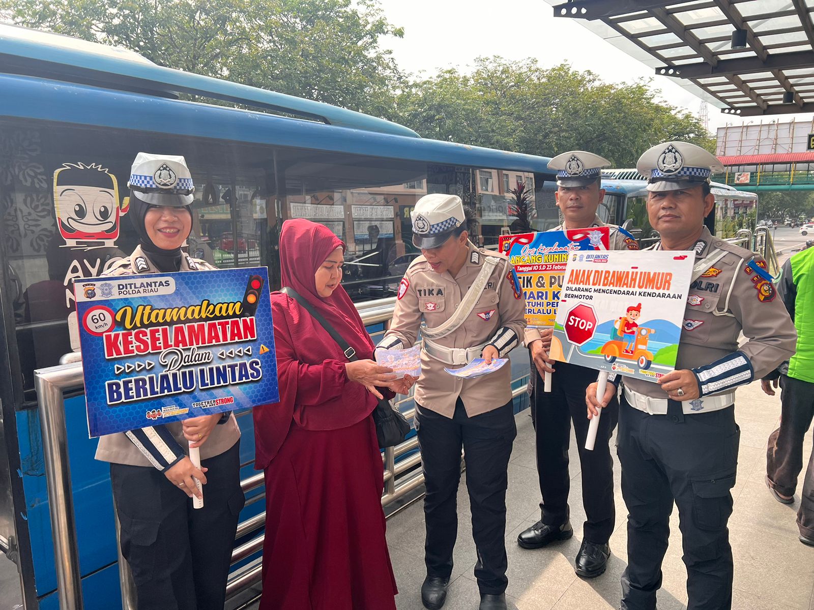 Sementara itu, tampak di lokasi kegiatan, Tim Satgas Preemtif Operasi Keselamatan Lancang Kuning 2025 terus menyampaikan Himbauan kepada pengendara, penguna jalan serta pengunjung pusat perbelanjaan dan bahkan kepada penumpang busway yang berada di RTC Pekanbaru, kegiatan tersebut di pimpin langsung AKP Wulan Afdhalia R. S.Tr.K., S.I.K Kanit Audit dan Inspeksi Subdit Kamsel Ditlantas Polda Riau.