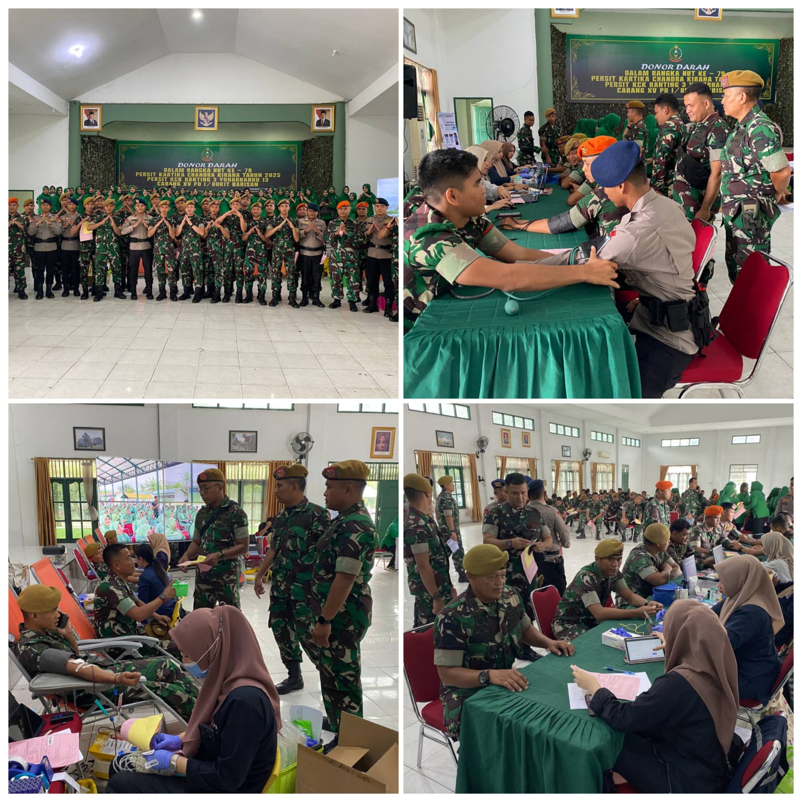 Kegiatan tersebut diikuti oleh Personel TNI, Polri, Persit, dan masyarakat umum, sebagai wujud kepedulian sosial terhadap sesama.