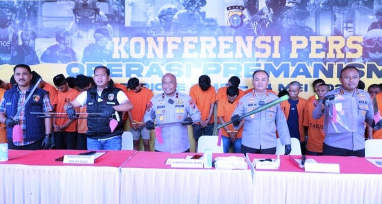 Hal itu ditegaskan Wakapolda Riau Brigjen Pol Jossy Kusumo saat pimpin konferensi pers Operasi Premanisme Lancang Kuning 2025, Kamis (15/5/2025), yang dihadiri oleh, Dir Reskrimum, Dir Resnarkoba, Kabid Humas dan Kabid Propam Polda Riau.