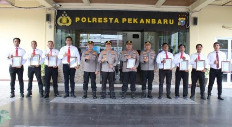 Dalam apel yang digelar di halaman belakang Mapolresta Jalan Ahmad Yani pada Senin, (11/8/2025) Kapolresta Pekanbaru Kombes Pol Jeki Rahmat Mustika memberikan penghargaan kepada sejumlah personel berprestasi.