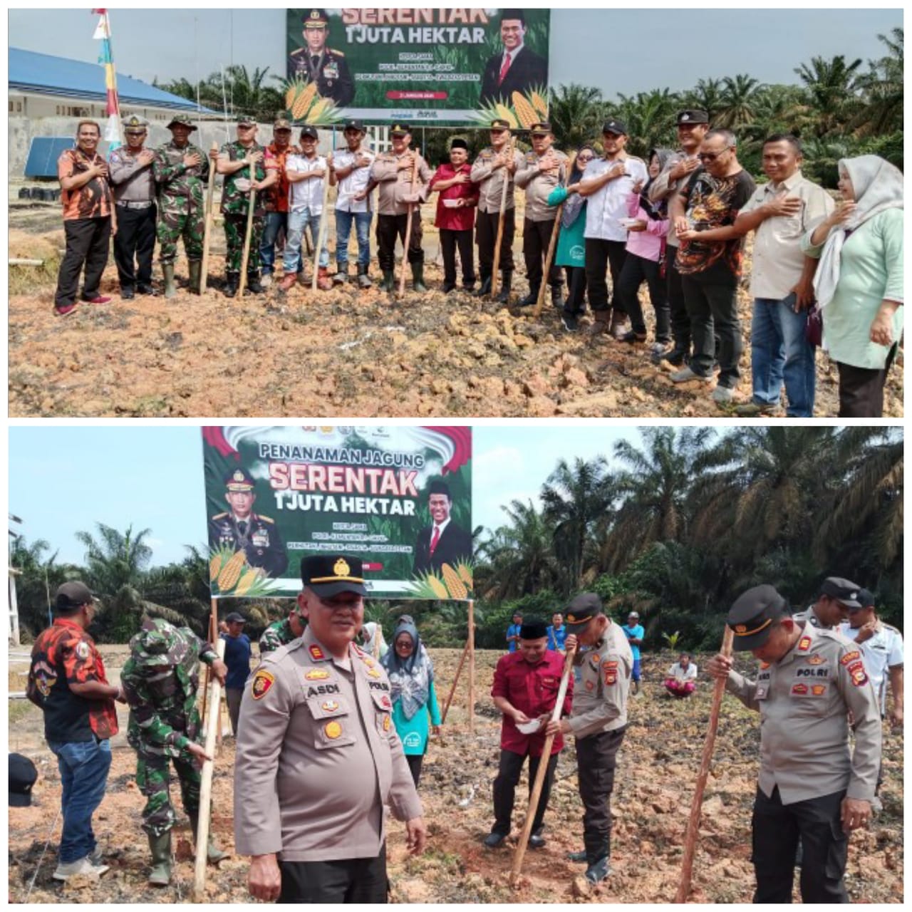 Kesempatan ini Kapolres Kampar AKBP Ronald Sumaja, S.I.K, M.H melalui Kapolsek Siak Hulu AKP Asdisyah Mursyid, S.H mengatakan pada pagi yang cerah ini dengan Program Pemerintah dari Bapak Presiden RI yaitu Penanaman Jagung Serentak 1 Juta Hektar di seluruh Indonesia. Penanaman saat ini ada di titik 2 lokasi yaitu di bapak Kuncoro Desa Baru sekitar 1/4 Hektar dan di Lahan 1 Hektar milik PT. Wasundari Indah,” terang Kapolsek