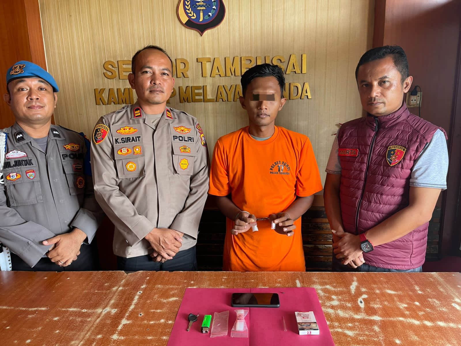 Berdasarkan informasi tersebut, Unit Reskrim Polsek Tambusai melakukan penyelidikan dan pengintaian di parkiran Puskesmas Tambusai II. Kanit Reskrim Polsek Tambusai AIPDA Marta Kusuma, S.H memimpin langsung tim dan berhasil mengamankan tersangka berinisial T (34 tahun) yang kedapatan memiliki narkotika jenis sabu.