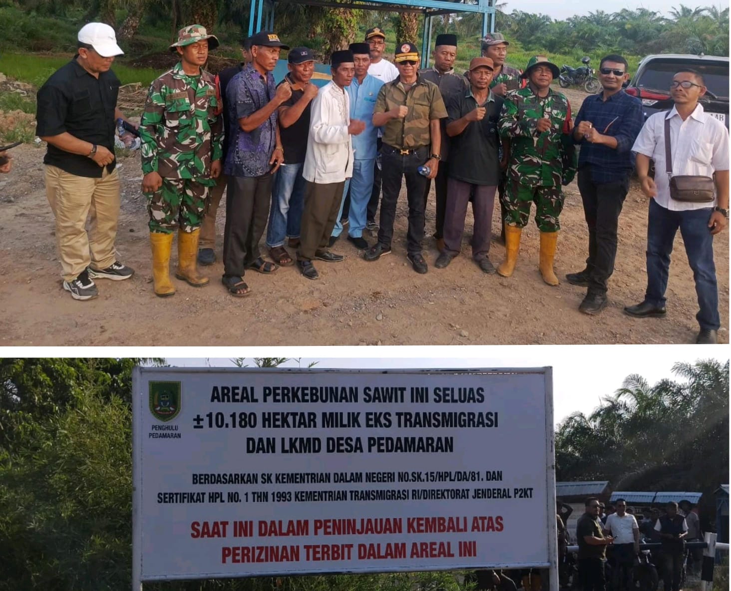 Dari pantauan media ini, Tim Merah Putih untuk kesejahteraan Indonesia melakukan Pemasangan plang di areal perkebunan sawit yang luas nya kurang lebih 10.180 Hektar milik eks Transmigrasi dan LKMD Desa Pedamaran.