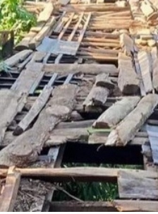 Pasalnya, jembatan di desa itu yang merupakan akses penghubung warga desa kondisinya rusak parah, dikuatirkan dapat memakan korban.