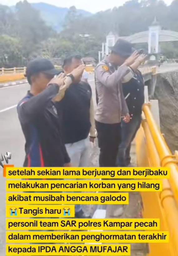 PEKANBARU, Eradigitalnews.com : Suasana haru menyelimuti lokasi bencana alam di Kabupaten Agam, Sumatera Barat (Sumbar), saat anggota Polres Kampar dan Polda Riau memberikan penghormatan terakhir untuk Ipda Angga Mufajar, yang hilang dalam tugas kemanusiaan, Minggu (14/12/2025).