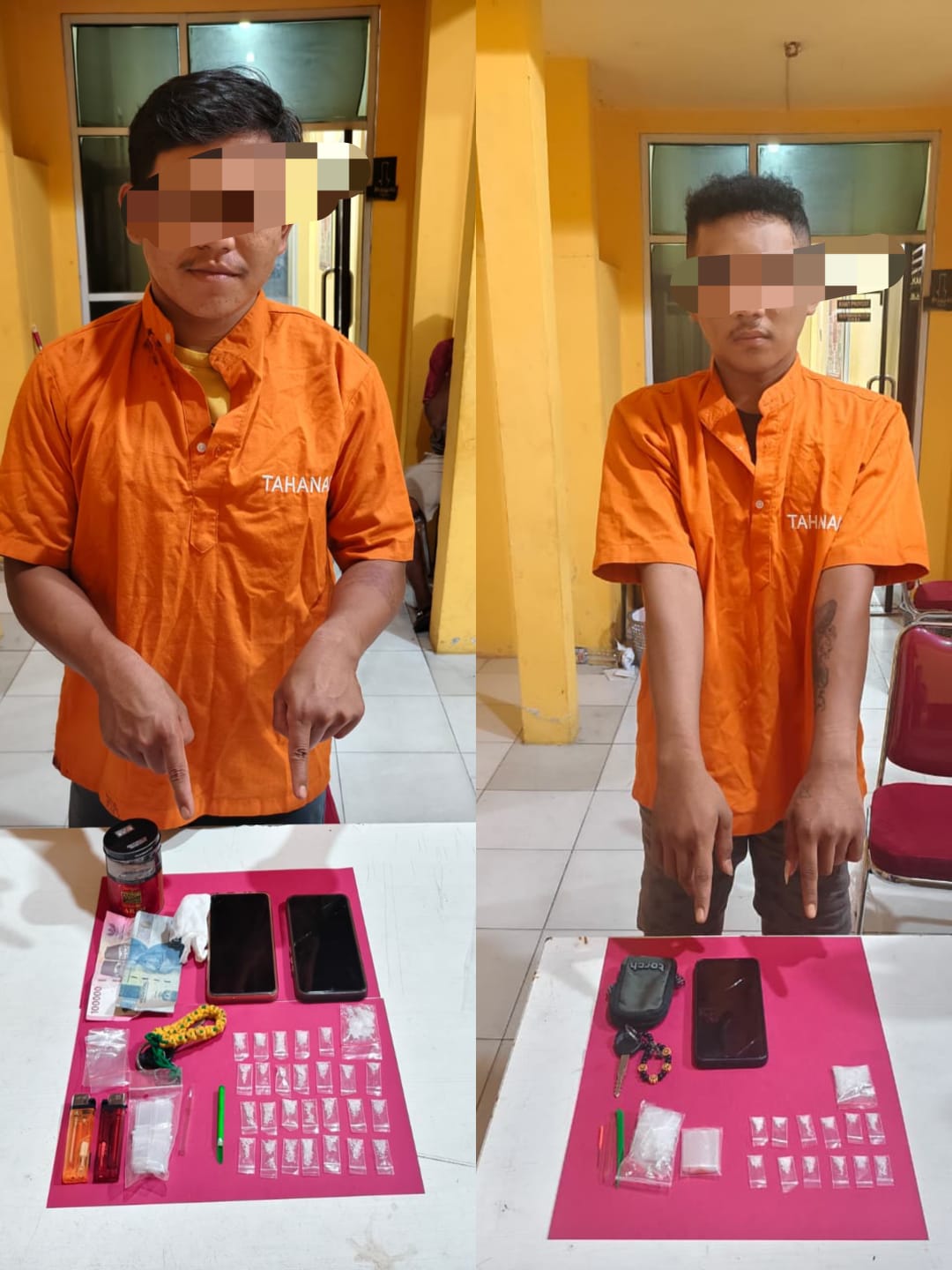 Pelaku pertama yaitu DE (22) ditangkap pada Jum’at (3/4/2026) sekira pukul 23.30 Wib, ia saat itu berada berada di SP II Desa Kota Bangun, darinya berhasil disita 13 paket sabu-sabu dengan berat 4,57 Gram dan pelaku kedua yaitu DI (21) ditangkap saat berada di Jalan Poros SP 1 Desa Cinta Damai, Kecamatan Tapung Hilir pada Sabtu (4/4/2026) sekira pukul 00.30 Wib. Darinya berhasil sita 27 paket sabu-sabu dengan berat bruto 6,93 Gram.