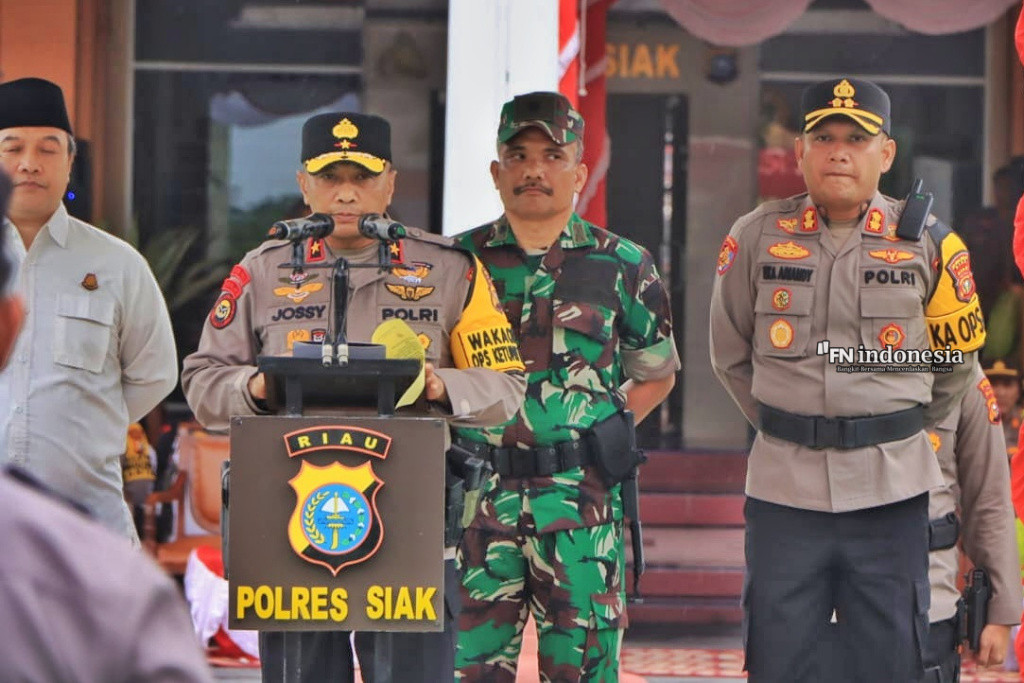 Kapolres Siak AKBP Eka Ariandy Putra, S.H., S.I.K., MSI., PJU Polres Siak Kapolsek Jajarannya beserta Dandim 0322/Siak diwakili Kasdim Mayor Inf. Indra Mangaratua Samosir,